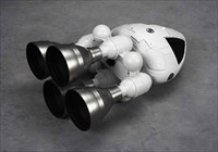 US distribution by Zika.Giant Leap Toys via a Kickstarter fund-raiser (from 20 September for 60 days). One variant option is oriented to Mattel collectors, with red engine bells and packaging. A second Dinky version (with green leg pods) was added October 2024. Normally if the Kickstarter goal ($250,000) is not reached the project is aborted, but the creators had a "plan B" to proceed. On 28 October they cancelled the Kickstarter, with small prices changes at the time.