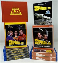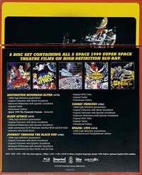 The booklet has glossy colour pages, with the text from the 2019 Fanderson book Super Space Theater (the four movies plus the Sybil Danning videos). There is a chapter on Spazio 1999, and another by Tim Mallett on the remastering for Network. In addition to photos of previous VHS, laserdisc and DVD covers, there are also many pages of photos from the series (mostly from the adapted episodes).