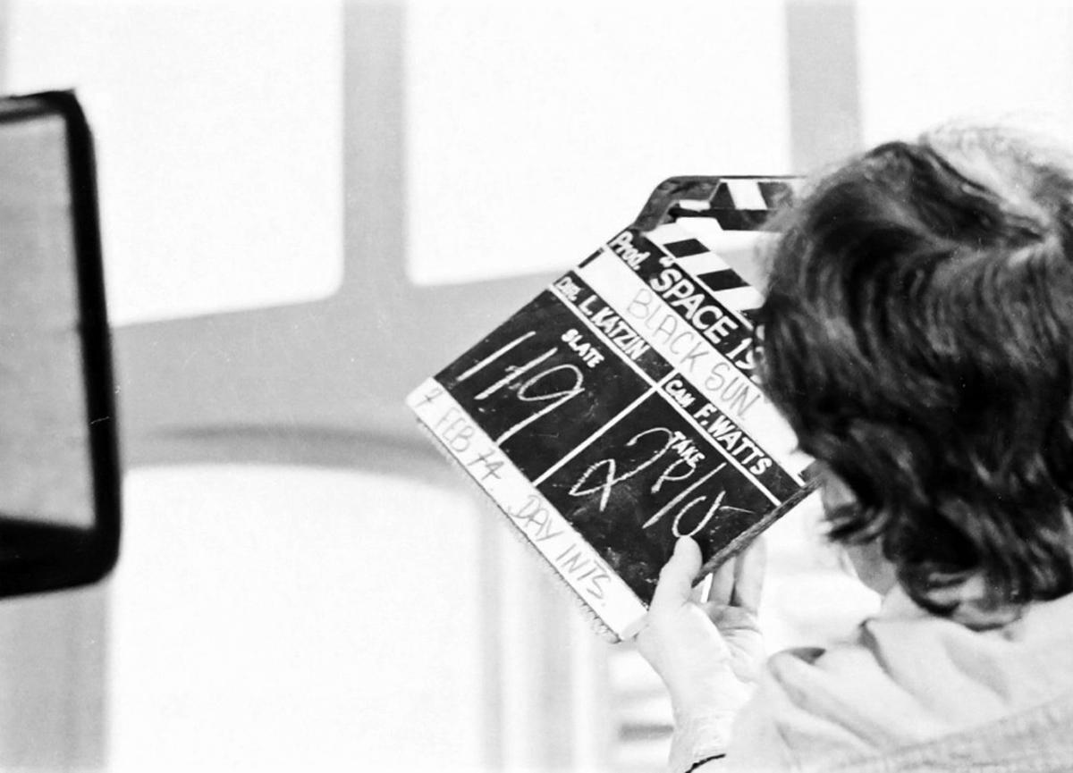 Paul Turtle holds the clapperboard for a Care Unit shot on Tuesday 15 January 1974, second day of shooting Matter of Life and Death