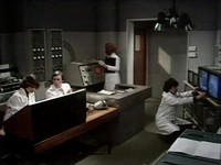The set appears in episode 6, but Kano's desk has gone, and the Moonbase video phone canopies have been mounted on the wall instead.