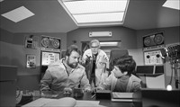 SHADO headquarters in UFO featured a computer wall, just like Main Mission, but in 1969 that meant tape drives. There were several designs of tape drive here. In one episode we see an operative starting to thread a tape, showing SHADO could not afford modern vacuum feed units which can automatically load and thread the tapes, which is faster and causes less damage to the end of tapes. These props would appear in lots of other shows, but none of these tape drives were actually used in Space: 1999.