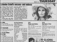29 January-4 February 1977, p64-65, interview with Schell's ex-husband William Marlow, by Dermod Hill, includes quotes from her