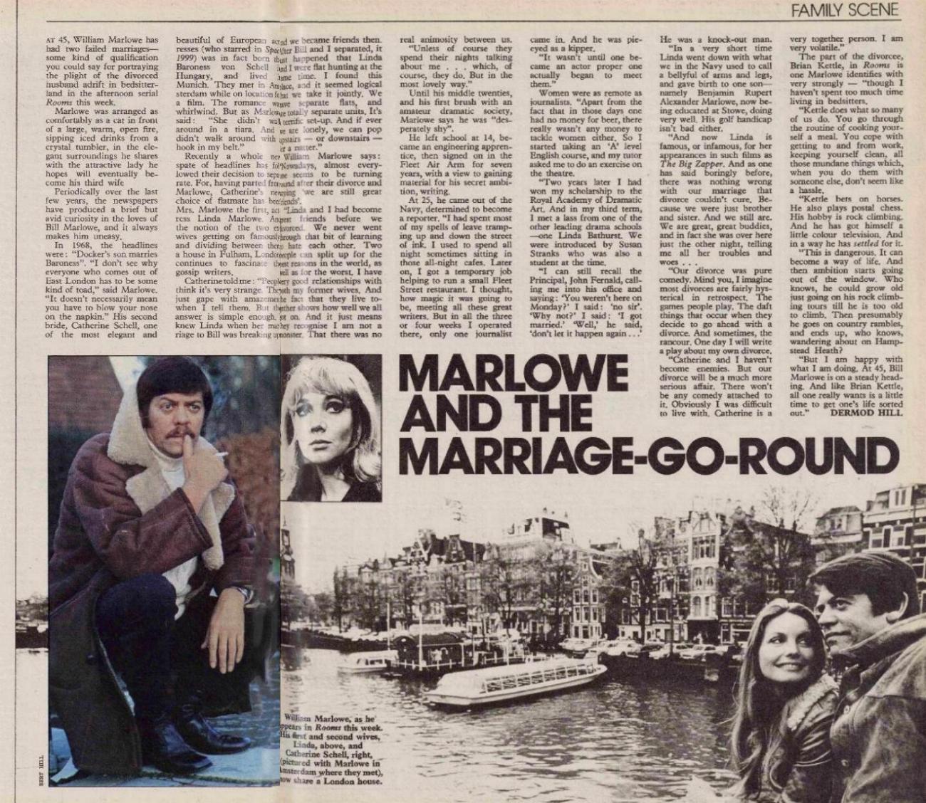 Recently a whole new spate of headlines has followed their decision to separate. For, having parted from Marlowe, Catherine's new choice of flatmate has been Mrs. Marlowe the first, actress Linda Marlowe. And the notion of the two ex-wives getting on famously, and dividing between them a house in Fulham, London, continues to fascinate the gossip writers.