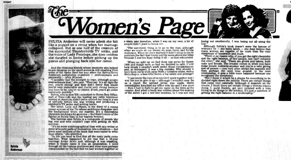 Sylvia Anderson will never admit she felt like a puppet on a string when her marriage collapsed. But as one half of the creators of the successful Thunderbirds TV series, and the voice of Lady Penelope, she does confess she dangled in limbo before picking up the pieces and plunging back into her career.