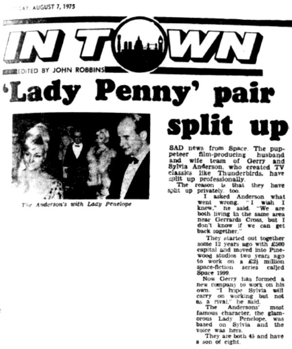 The Andersons' most famous character, the glamorous Lady Penelope, was based on Sylvia and the voice was hers.