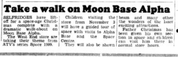 The West End store are taking their theme from ATV's series Space 1999.