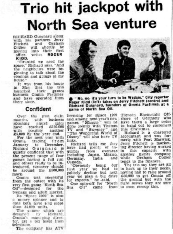 Evening News, Tuesday 9 December 1975 p24, Money Pages. Omnia produced a few more games (Geronimo, Juggernaut, Nationwide, Disney The Rescuers) plus jigsaws before ending in 1978.