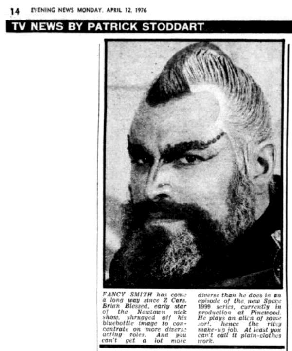 Fancy Smith has come a long way since Z Cars. Brian Blessed, early star of the Newtown nick show, shrugged off his bluebottle image to concentrate on more diverse acting roles. And you can't get a a lot more diverse than he does in an episode of the new Space 1999 series, currently in production at Pinewood. He plays an alien of some sort hence the ritzy make-up job. At least you can't call it plain-clothes work.
