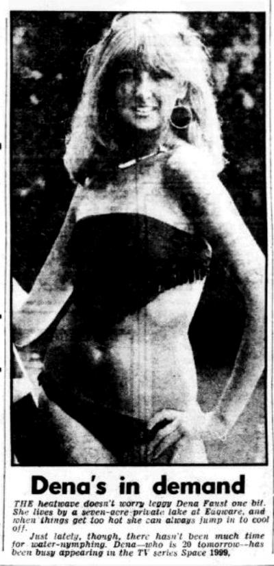 Evening News, Wednesday 14 July 1976 p13 in Ad Lib, John Blake's guide to living in London. We have not yet identified Dena Faust in an episode.