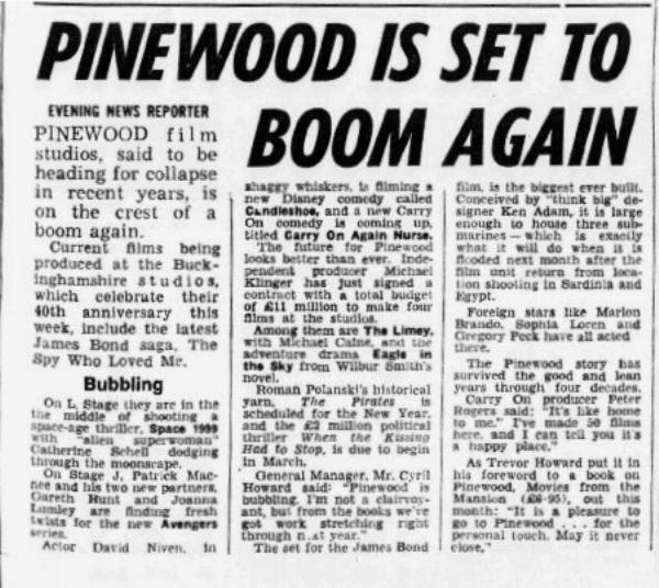 General Manager, Mr. Cyril Howard said: "Pinewood is bubbling. I'm not a clairvoyant, but from the books we've got work stretching right through next year."