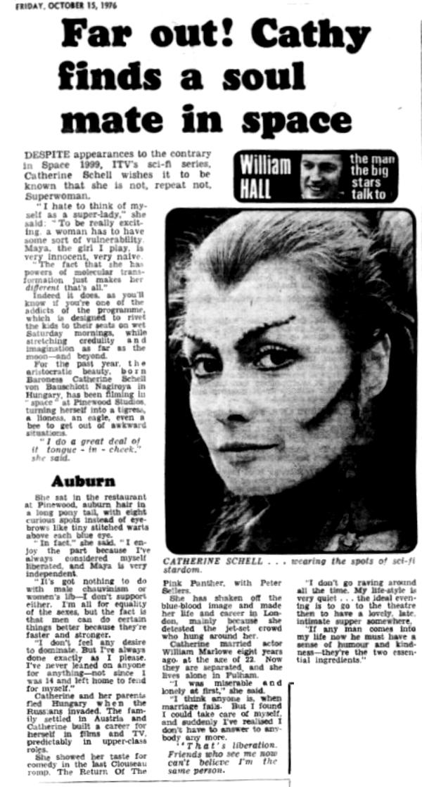 For the past year, the aristocratic beauty, born Baroness Catherine Schell von Bauschlott Nagiroya in Hungary, has been filming in space at Pinewood Studios, turning herself into a tigress, a lioness, an eagle, even a bee to get out of awkward situations.