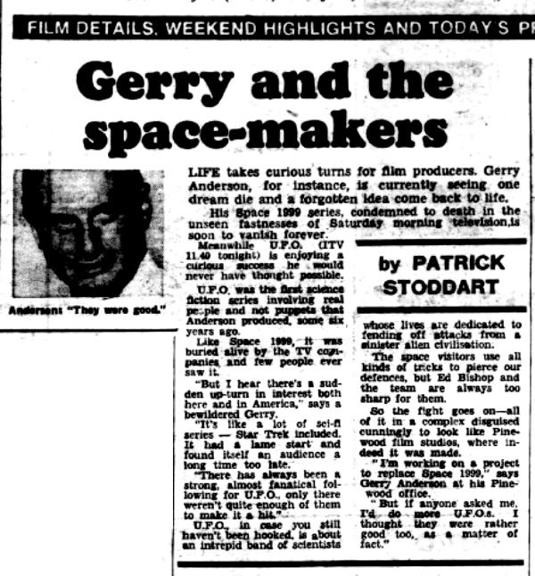 Meanwhile U.F.O. (ITV 11.40 tonight) is enjoying a curious success he would never have thought possible.